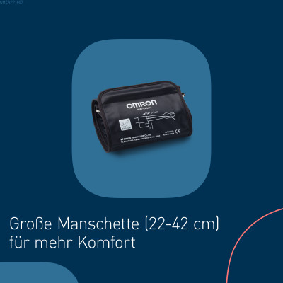 Die weiche Universalmanschette (22–42 cm) passt an eine Vielzahl von Oberarmruchmessern und liefert genaue Ergebnisse – unabhängig von der Positionierung am Oberarm. Die Erkennung unregelmässiger Herzschläge sowie die Körper Bewegungserkennung tragen dazu bei, Fehler zu reduzieren und die Zuverlässigkeit jeder Messung zu erhöhen.