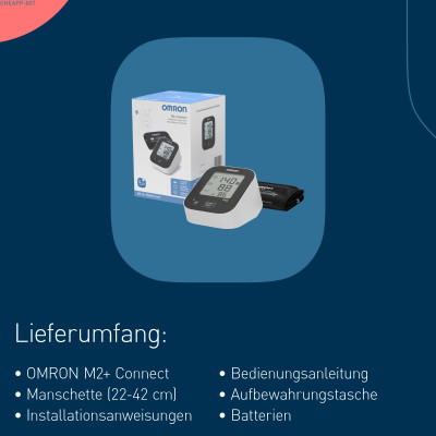 Dank Bluetooth-Konnektivität speichert das M2+ Connect die Messwerte automatisch in der OMRON connect App, damit Benutzer ihre Blutdruck Trends im Laufe der Zeit verfolgen oder die Daten leicht mit ihrer Fachperson teilen können. Das Gerät ist intuitiv zu bedienen – auch für Erstbenutzer.