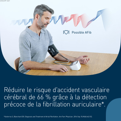 L’appareil signale également les mouvements corporels et les battements irréguliers pendant la mesure, contribuant ainsi à des relevés plus précis et cohérents. L’ensemble de ces fonctions favorise une approche plus éclairée, sûre et proactive de la santé cardiovasculaire.