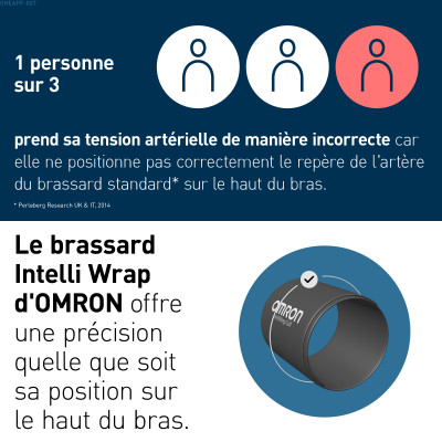 Le brassard Intelli Wrap élimine le problème des mauvais positionnements en garantissant des mesures fiables, quelle que soit sa position autour du bras. Cela réduit considérablement les erreurs fréquentes lors des mesures à domicile.