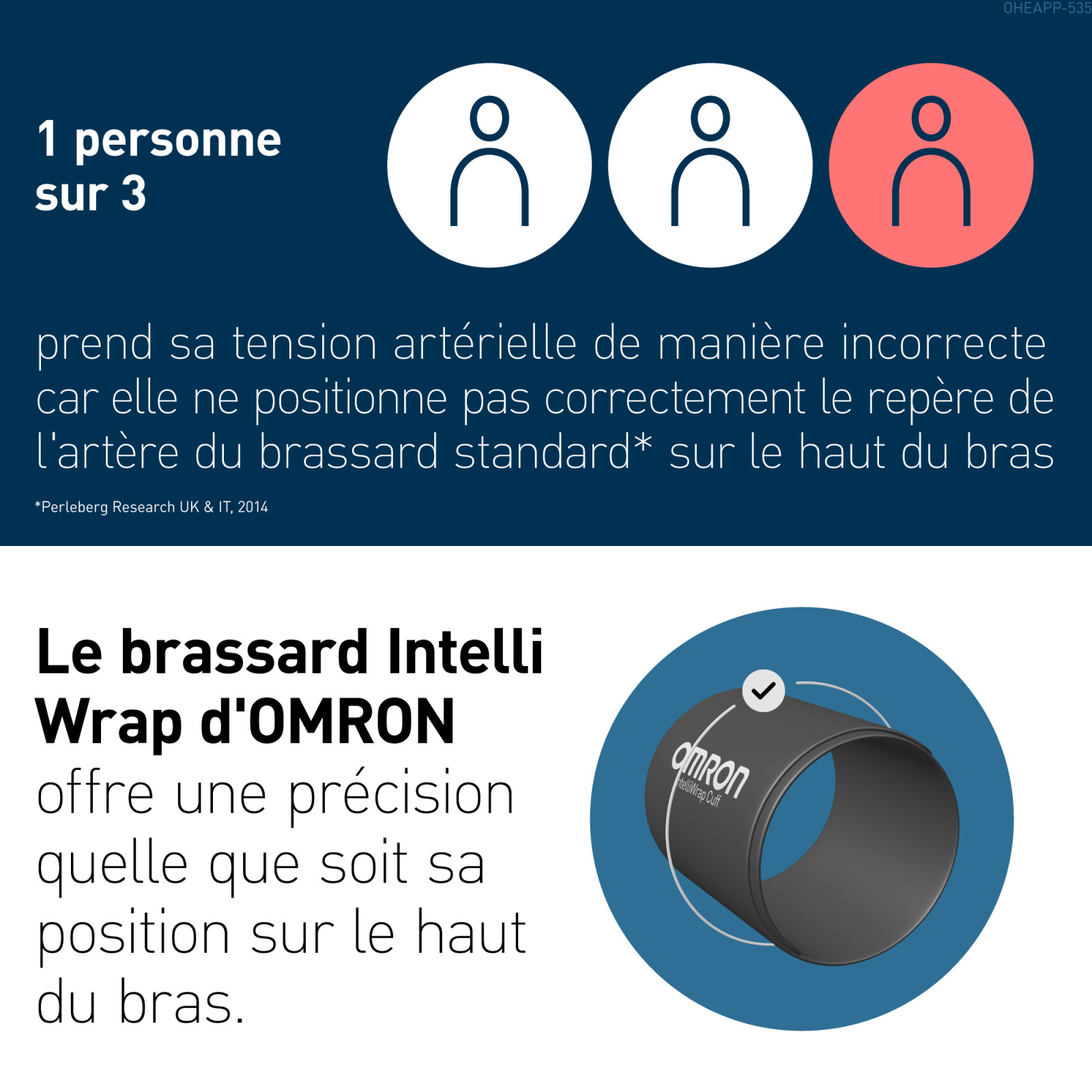 Le brassard Intelli Wrap d'OMRON, unique en son genre, permet de mesurer avec précision la tension artérielle dans n'importe quelle position de la partie supérieure du bras.