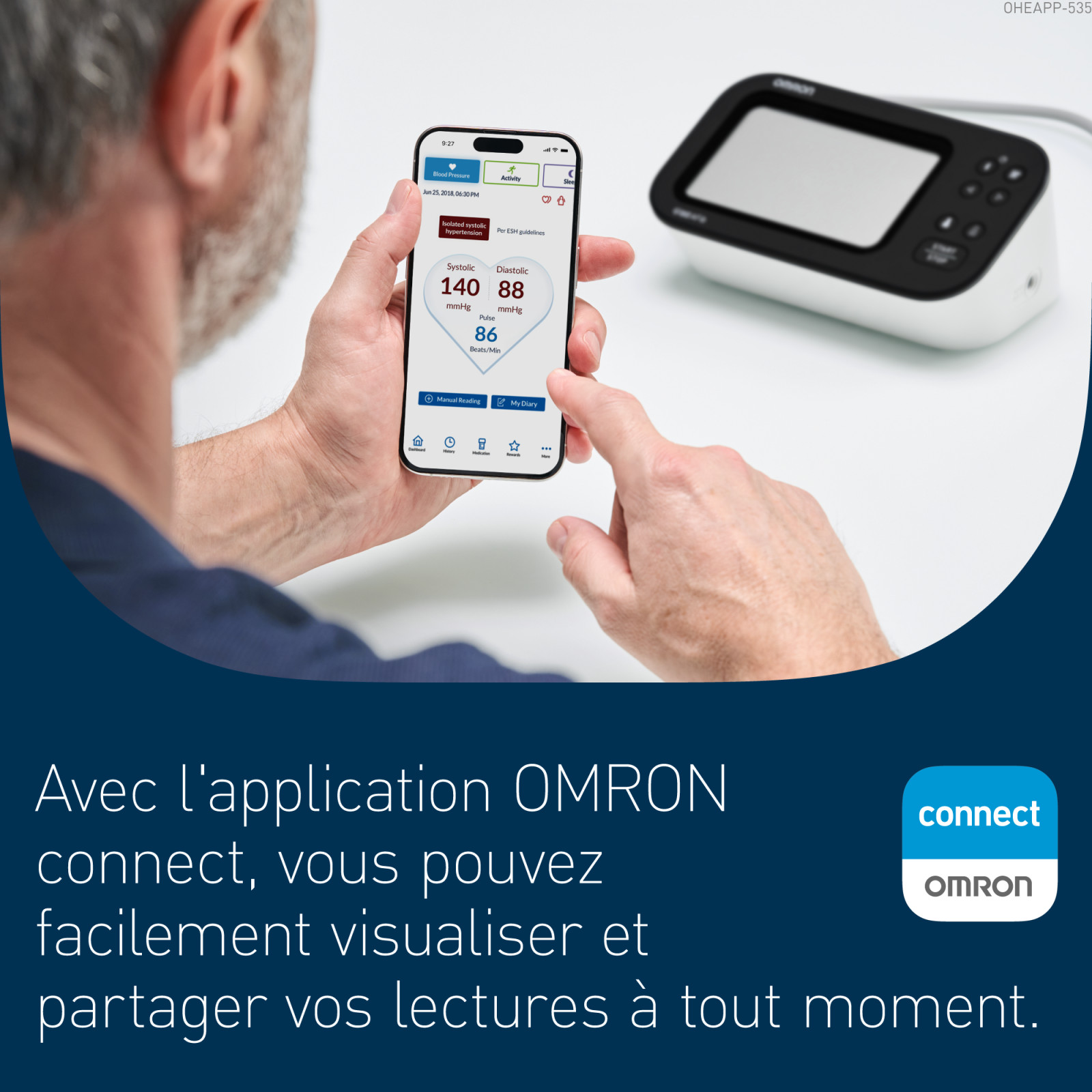 Mets automatiquement à jour tes derniers résultats sur ton smartphone par Bluetooth et dispose de tes mesures de tension artérielle au bout des doigts grâce à l'application OMRON connect ou tu peux simplement demander à Alexa de te communiquer tes dernières mesures sans même prendre ton téléphone.
