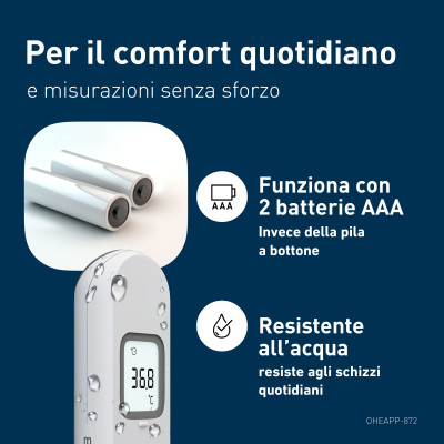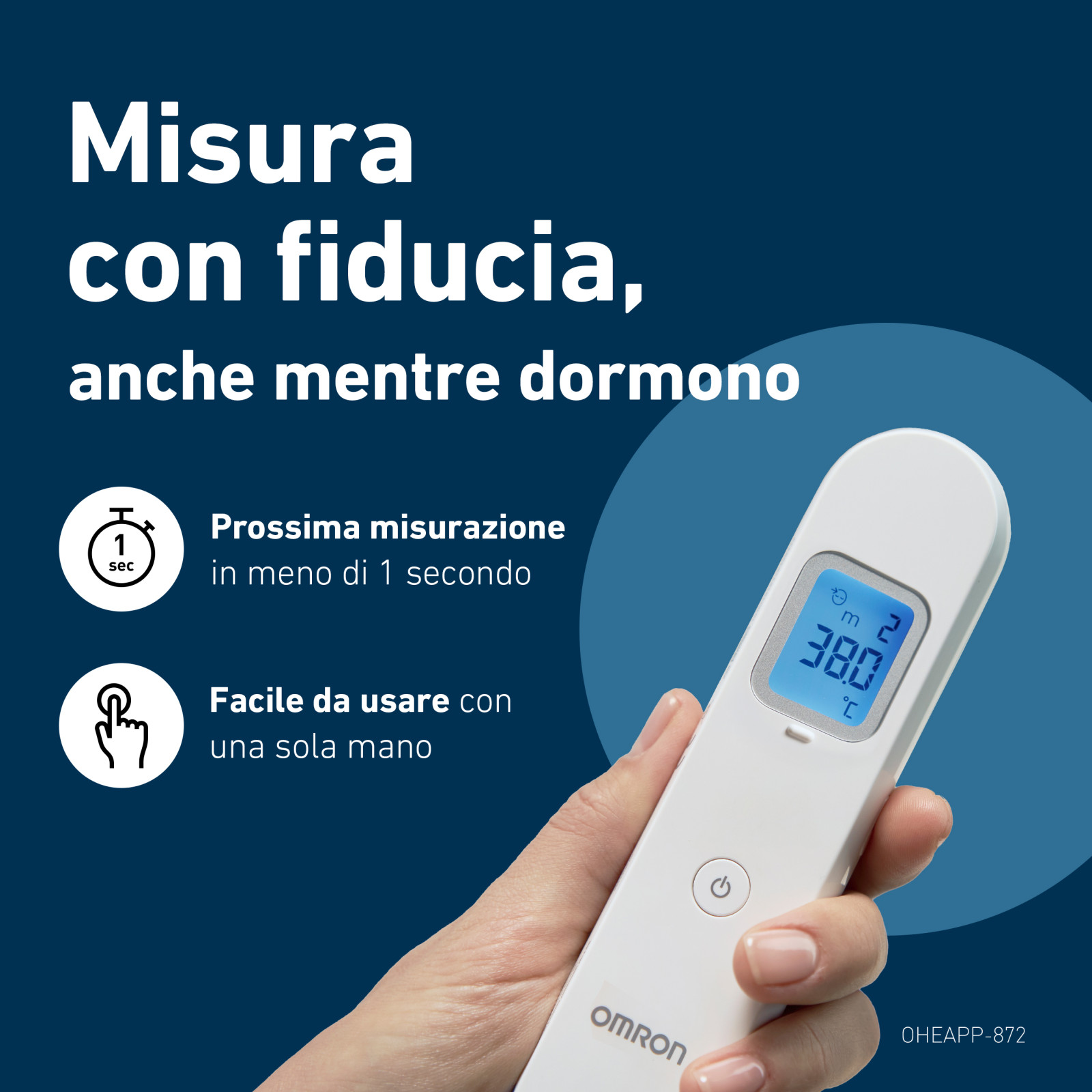 Termometro OMRON Gentle Temp 730, 2 batterie AAA, copertura del sensore, manuale istruzioni.