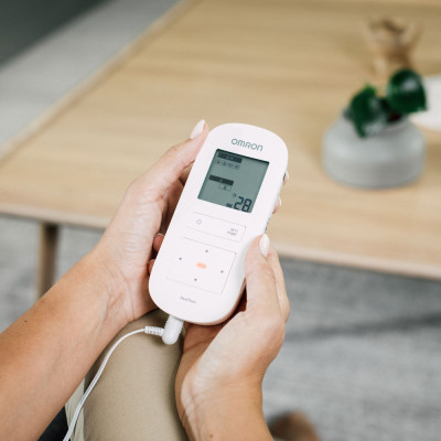 OMRON HeatTens è un dispositivo per il trattamento del dolore destinato a ridurre ed alleviare il dolore muscolare e articolare, l’indolenzimento e l’intorpidimento di schiena, braccia, gambe, spalle e piedi mediante l’elettrostimolazione della superficie cutanea in prossimità del sito dolorante. HeatTens offre sia l’effetto lenitivo del calore sia il trattamento del dolore mediante la tecnologia TENS.