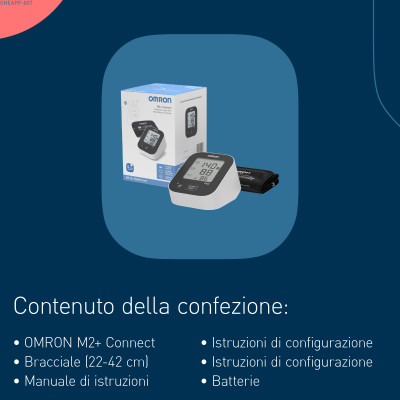 OMRON M2+ Connect è progettato per offrire una misurazione della pressione arteriosa semplice, precisa e connessa. Basta indossare correttamente il bracciale e premere “Start”: il dispositivo rileva automaticamente i valori grazie alla tecnologia Intellisense™, evitando un gonfiaggio eccessivo e garantendo il massimo comfort.