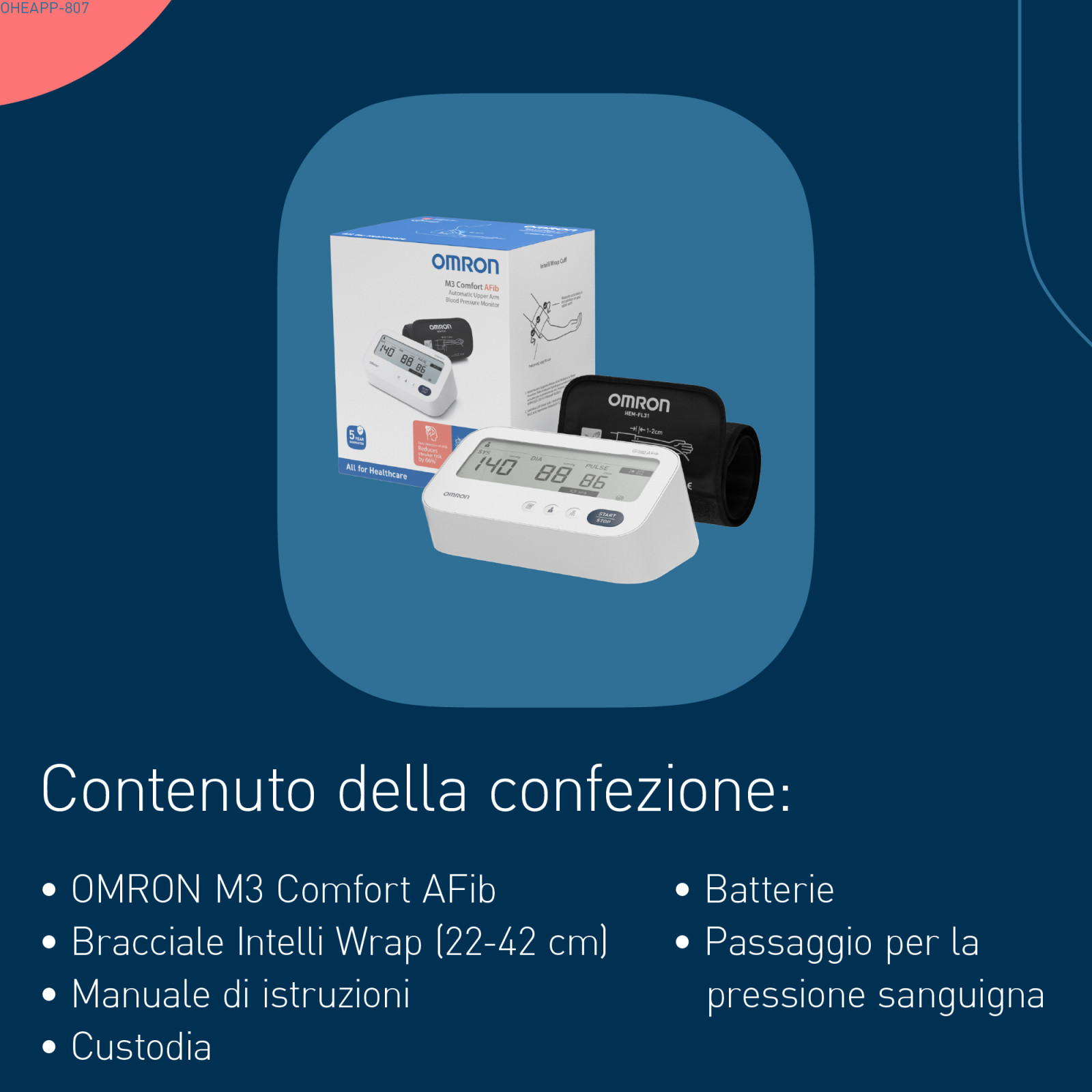 OMRON M3 Comfort AFib è pensato per chi desidera un misuratore di pressione da braccio affidabile, facile da usare e con funzionalità clinicamente avanzate per la prevenzione cardiovascolare.