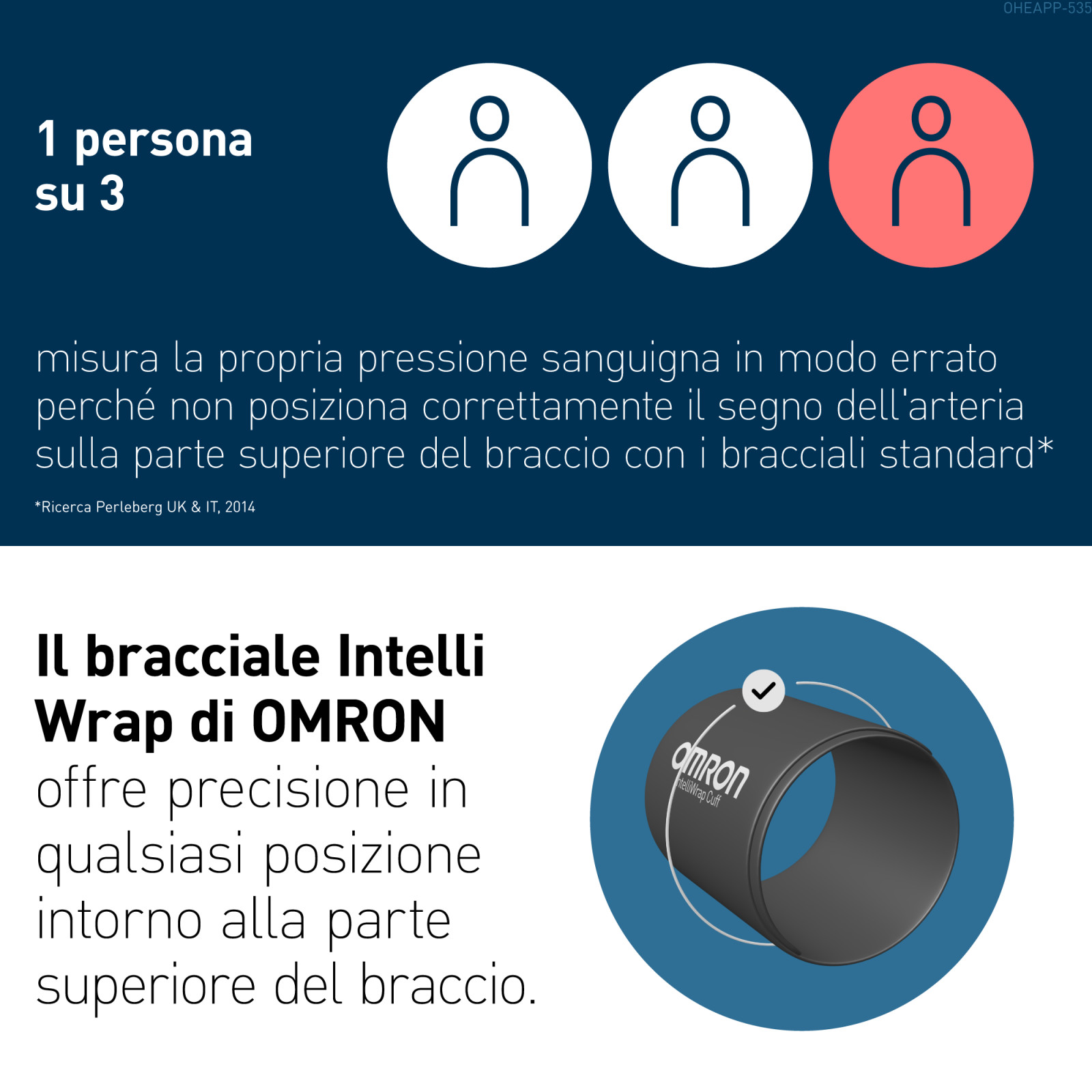 Il bracciale Intelli Wrap di OMRON, unico nel suo genere, ti permette di misurare con precisione la pressione sanguigna in qualsiasi posizione della parte superiore del braccio.