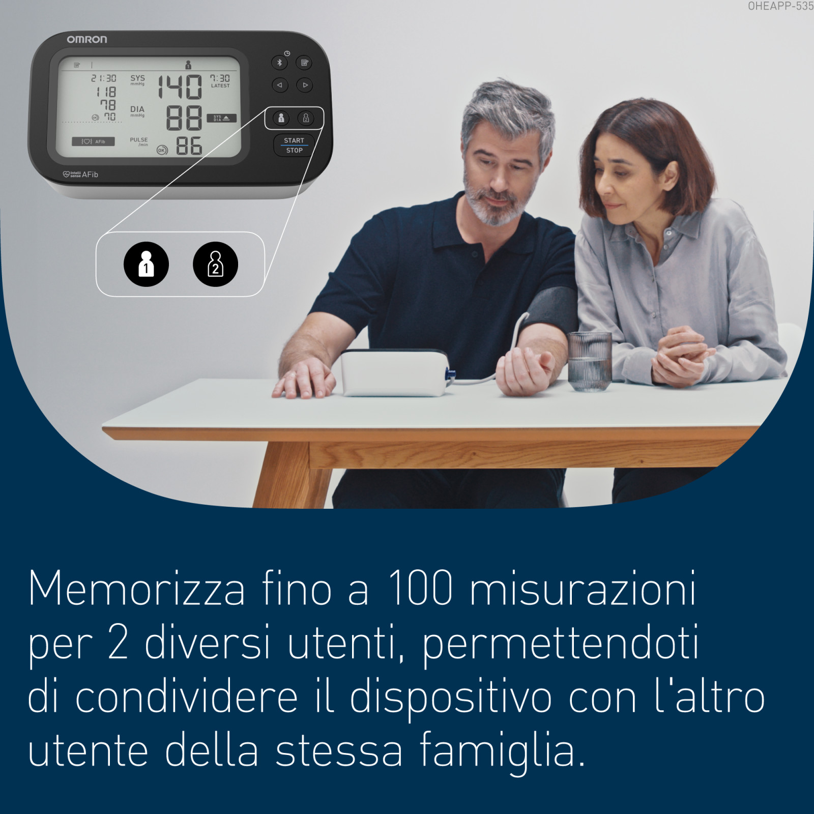 Trasforma il tuo controllo della pressione arteriosa a casa in una potente difesa contro l'ictus con M7 intelli IT AFib, che si avvale della tecnologia Intellisense AFib di OMRON, clinicamente validata.